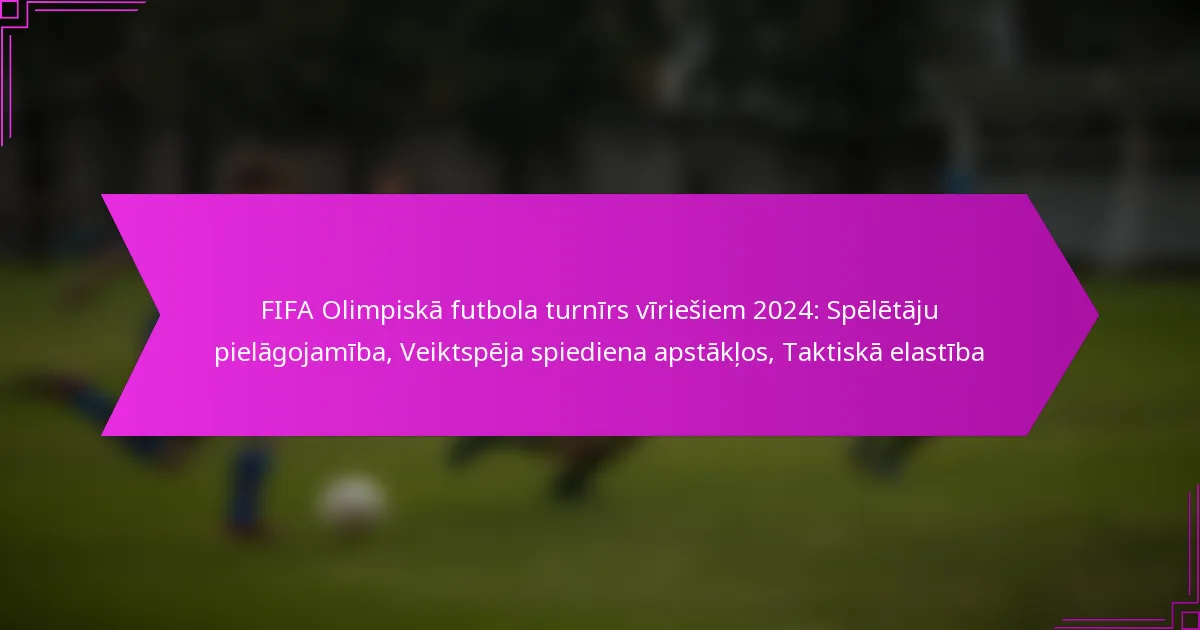 FIFA Olimpiskā Futbola Turnīrs Vīriešiem 2024 izceļ spēlētāju pielāgošanās spējas, sniegumu stresa apstākļos un taktisko elastību. Sportistiem jāpielāgo savas prasmes un domāšana, lai tiktu galā ar dinamiskajiem izaicinājumiem augsta riska spēlēs, kur mentālā izturība ir izšķiroša. Turklāt komandām jāizsaka taktiskā elastība, kas ļauj tām mainīt savas stratēģijas, reaģējot uz mainīgajām spēles dinamikām un pretinieku taktiku.